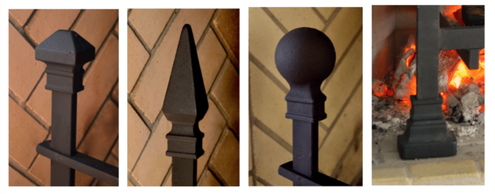 Now you can turn the uprights on your Texas Fireframe grate into elegant, built-in andirons. Our finials and bases are made by a master craftsman using traditional foundry techniques. Known for his exquisite restorations of ironwork on landmark properties, our designer created three finial styles and a sturdy pedestal base exclusively for our grates. These heavy-duty accessories are made in the USA of cast iron, and will add year-round beauty to your fireplace. The finials add to the height, but the pedestal base adds no height since the front leg of the grate slides right through it. Each one secures firmly in place with the hidden set screw provided. Use finials alone or paired with pedestals. Select your style on the order page. You’ll have the look of andirons in your fireplace for much less than what you’d spend on a separate pair.